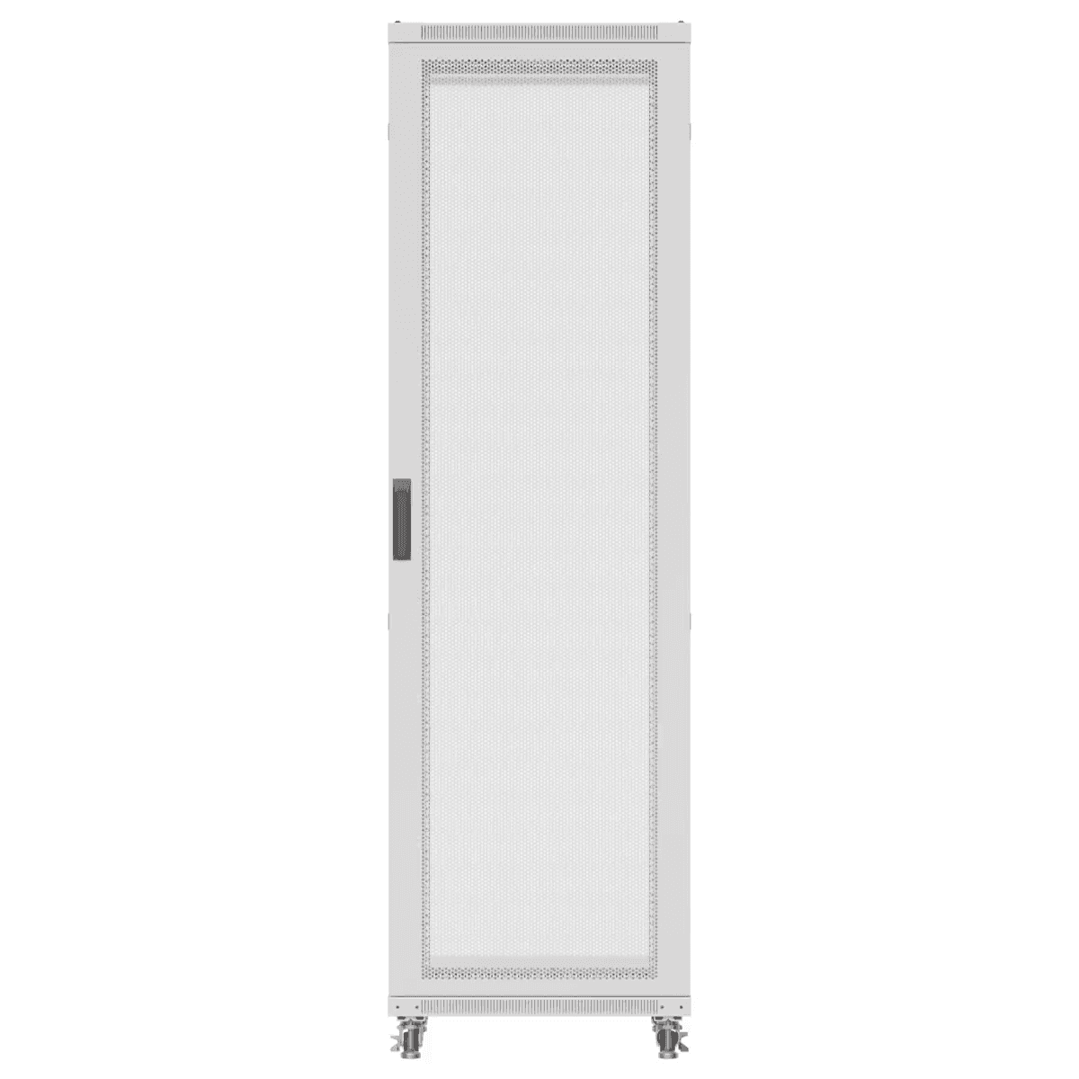 Fully assembled floor rack with built-in fans, removable panels, and lockable casters, engineered for optimal airflow, heavy-duty stability, and easy equipment access.